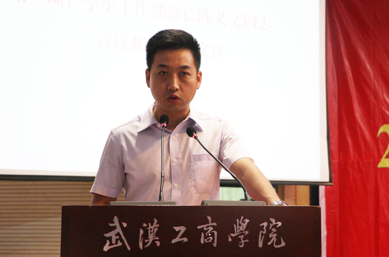 学工部部长陈义文宣读了关于授予2016届毕业生“三好学生”、“优秀学生干部”、“优秀毕业生”以及“单项优秀奖”的相关表彰文件