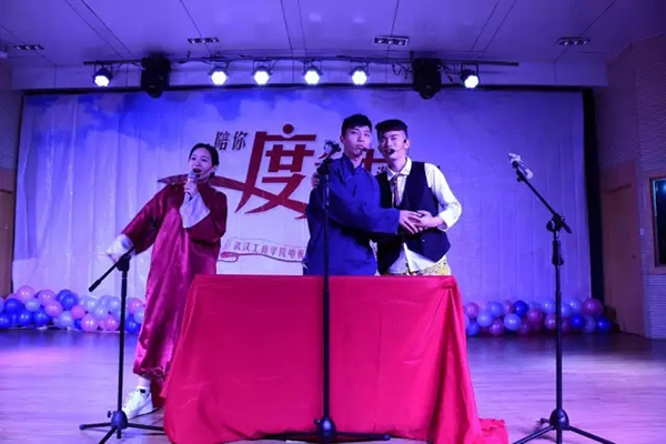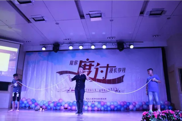 随后现场的大屏幕播放了纪录片《6年陪伴,成长随行》和微电影《心有多大梦就有多大》,《6年陪伴,成长随行》讲述的是该校电子商务学院青年志愿者协会组织的“微笑培蕾”活动,该协会成员6年来坚持给洪山区青菱社区的外来务工人员子女做义务家教,帮助孩子们更好的学习、生活。6年来,该协会共招募了510名志愿者,累计辅导过86名外来务工人员的随行子女。晚会现场,孩子们还带来了歌曲《青春修炼手册》,甜美稚嫩的歌声以及天真灿烂的笑容让在场的观众都为之感动。《心有多大梦就有多大》影片展示了怀揣梦想的工商学子们追寻梦想的情景,最后一句“加油,青春”让现场爆发出一阵阵掌声。