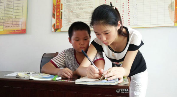 7月11日上午8:00,志愿者们来到了村委会专门为支教工作开放的办公室,开始了一天的支教工作。志愿者们主动和家长进行交流,了解孩子们的学习和生活情况。很多村里的小学生、初中生听说村里来了支教队,也都来到村委会办公室集中学习、写作业。志愿者们针对孩子们做作业的情况,有针对性地对孩子们进行辅导,对于孩子们遇到的问题,志愿者都详细地为其解答。