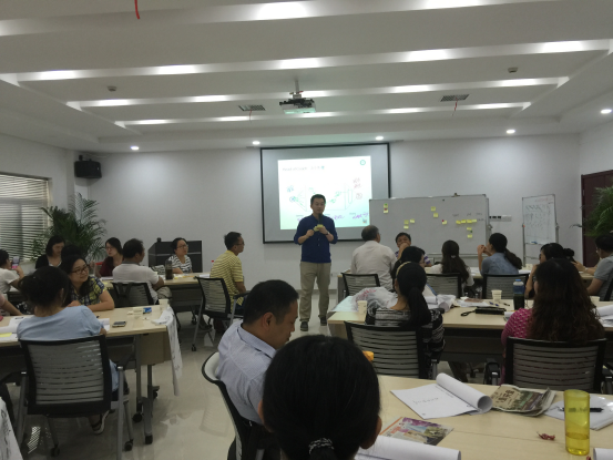 培训的第一天上午,人事部部长亓小林致辞,她对本次的培训教师苏尚华做了简要的介绍,也对冒着大雨前来参培教师给予了赞赏和肯定,同时对此次的“教练型”教师培训提出了更高的要求。她提出,通过此次培训希望教师能够学知识,拓思路,将所学应用于后期的教学过程中,以后的教学中都要转换教学思想,将自己从教师的角色变换成教练,面向市场的洞察力、学生的思维力,去培养学生的创新精神。同时在这次的沟通平台上,希望大家能够深入的交流。
