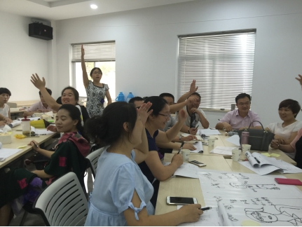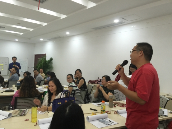培训课程采用分组讨论的形式,全力调动每一位学员的参与性。苏老师除了阐明“教练型”教师的定义以外,还设置了很多互动性的活动,比如开场要求所有人画出自己的自画像,再去寻找相似的自己,去加强大家之间的联接,以达到破冰的效果。