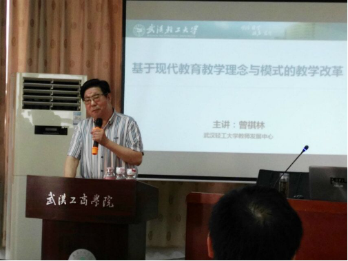 中心邀请了武汉轻工大学原校长曾祺林教授作了题为“基于现代教育理念与模式的教学改革”的讲座。曾教授对比了传统教育教学观念和现代教育教学观念之间的差异,讲解了通过两种教育模式的转换,实现学校教学改革的模式。他特别使用了微助教来展示现代教育技术如何助力课堂教学。