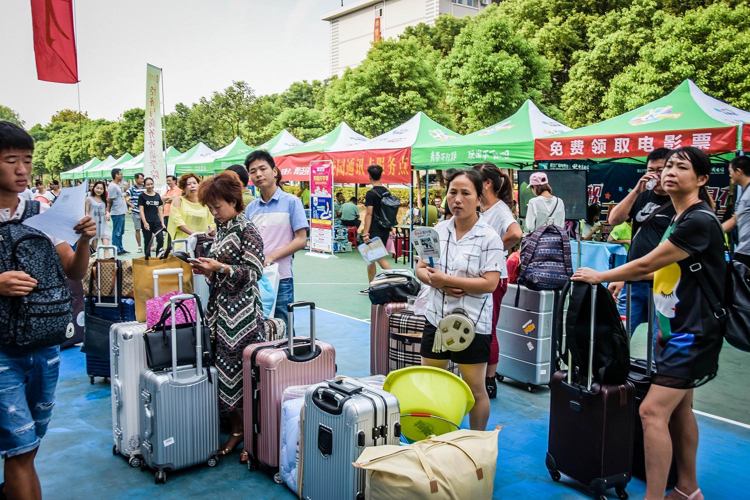 照看行李的家长们