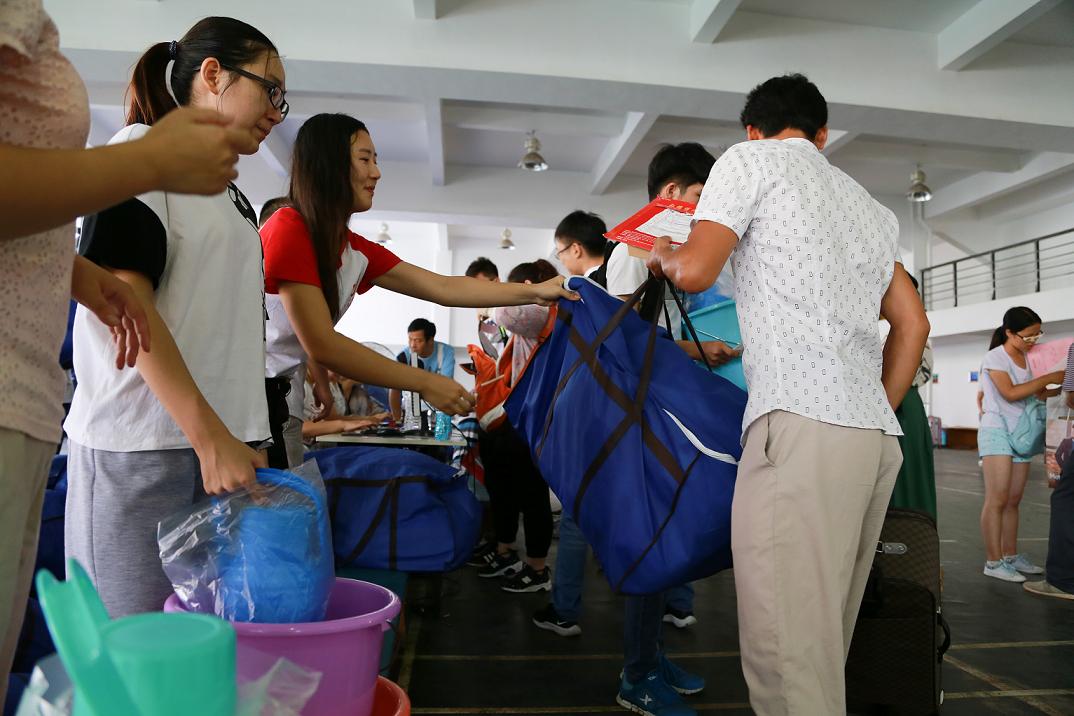 志愿者帮忙提行李