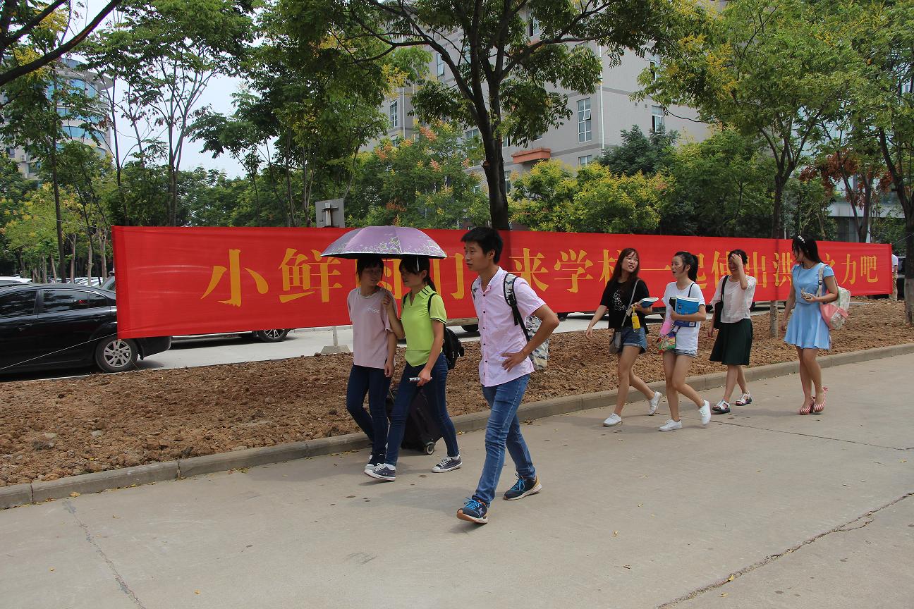 学校大门挂起迎新条幅
