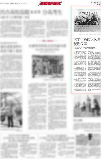 本报讯(记者 柯兵通讯员 吴田芳)“汉字里面竟然装满了武汉的著名景点,太让人惊讶了。”9月11日,武汉工商学院艺术与设计学院创新实验班12名学生团队绘制的228幅“字绘武汉”正式完工。该系列作品目前已与湖北美术出版社签订合作项目并被纳入湖北出版基金体系,书名为《手绘中国——字绘武汉》,11月该书将作为《手绘中国》系列丛书的开山之作正式发行。