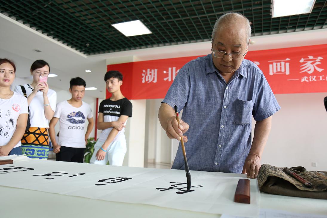 湖北知名书画家陶梅生一边创作一边与学生交流