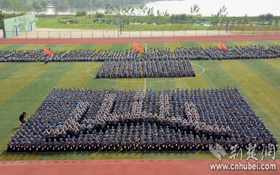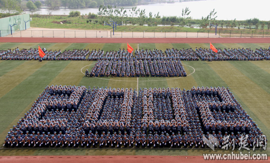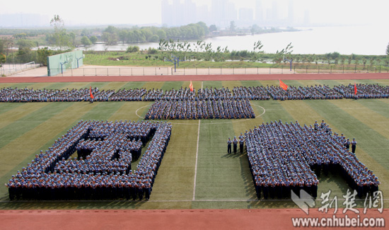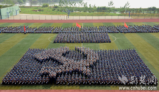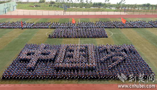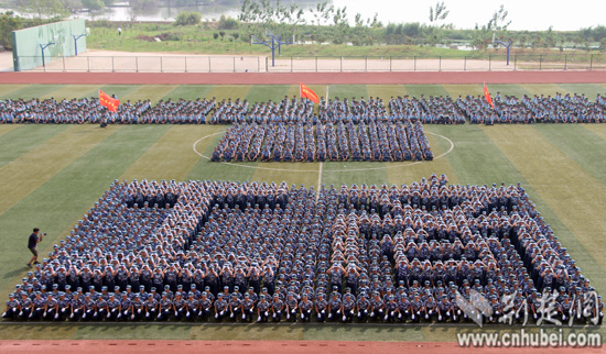 荆楚网消息(记者安立实习生刘姣姣)党徽、中国梦、国家、山峰、帆船……9月19日,武汉工商学院约1000名参加军训的大一女生,组成10余种令人惊叹的花样造型方阵。