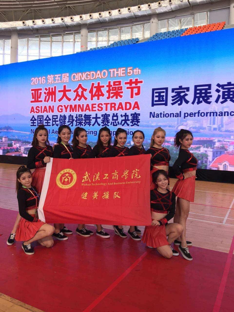 新闻中心讯(记者 王晨杲 见习记者 孙力军)9月24日下午,备受瞩目的“青岛2016亚洲大众体操节”暨“第五届全国全民健身操舞总决赛”,在青岛大学顺利闭幕。武汉工商学院健美操队在大众健美操6级项目上以0.04分的优势力压山东女子学院等高水平强队,获该组第一名,斩获特等奖;轻器械四级和爵士规定套路,获得一等奖;街舞自选动作获二等奖。
