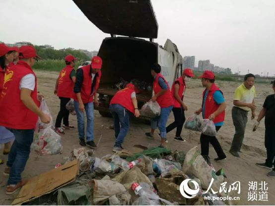 人民网 武汉(通讯员 李雄风)10月8日电 “江边石头下还有一个空水瓶,小心点把他捡过来。”10月7日下午,武汉工商学院10名青年志愿者协会成员参加了武汉义工群协会“爱我母亲河——长江”活动,与其他15名来自武汉各地的志愿者们一起在汉口江滩附近捡垃圾。