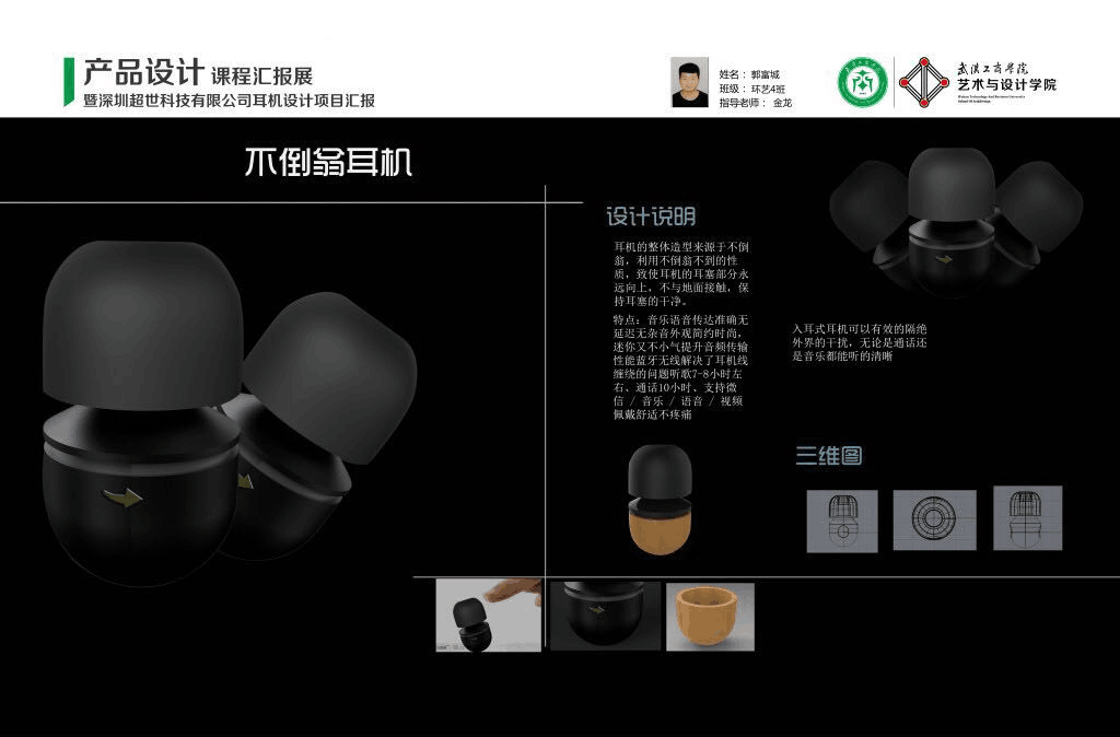 图为二等奖作品 不倒翁耳机 设计者:郭富城