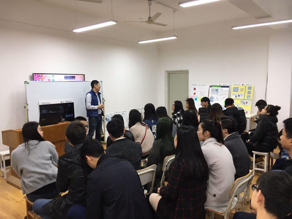 在现场,24位学生拿着自己作品的展板和3D打印实物,依次上台分享了自己的设计想法与成果。该系杨淑婧同学设计的“吊坠耳机”将耳机与珠宝相结合,耳坠通体散发着菱形的黄铜光泽,显得美观又精致。耳塞则恰到好处的“伪装”在耳坠下方,与其融为一体。“吊坠耳机内置重力感应装置,塞入耳内时会自动开启。避免了有线耳机打结的烦恼、头戴式耳机久带的沉重,实用性和美观性都能体现出来。”杨淑婧介绍自己的作品时说道。