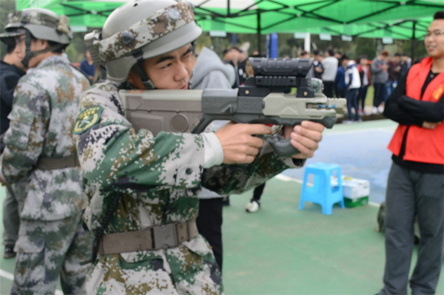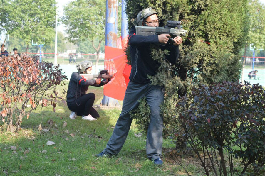 新闻中心讯 (见习记者 杨泽晗)“往那边包抄,注意掩护……”11月13日上午9:00,由武汉工商学院校兵社协会主办的首届“精武杯”真人CS大赛在该校户外拓展训练场如火如荼的开展。170名学生组成“军临天下队”、“战狼突击队”等34支队伍参与了此次比赛。兵社协会会长缪圳华担任比赛裁判。