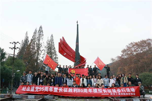 新闻中心讯(通讯员 李卓青 海鹏)12月3日,武汉工商学院学生工作部开展了“纪念建党95周年暨长征胜利80周年模拟长征徒步行”活动。本次活动全程共计25公里,从该校综合楼广场到武昌大道二道口公交站,有来自该校校兵社协会、各学院学生代表共70名学生参加。