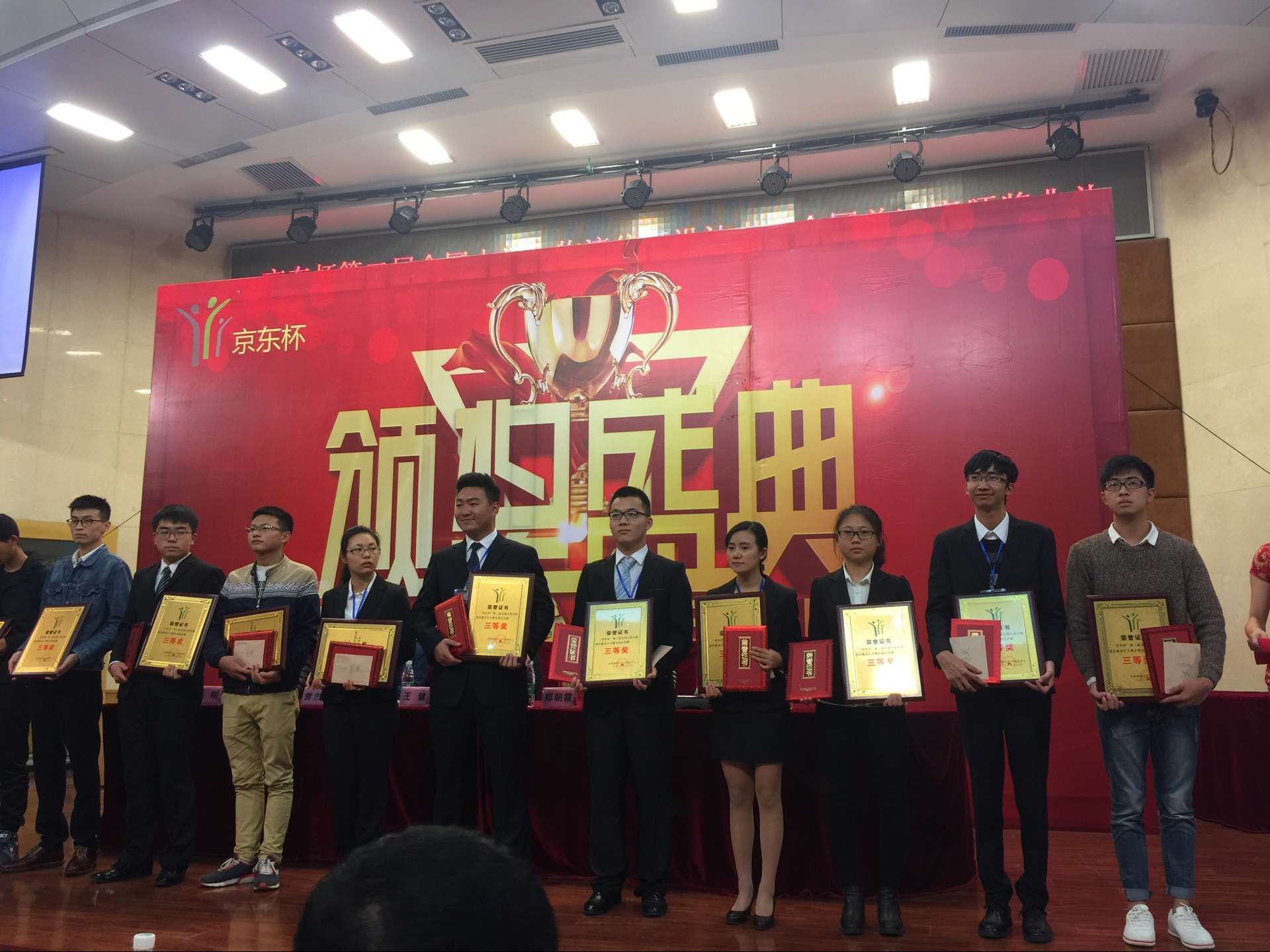 新闻中心讯(记者关翘楚)近日,“京东杯”第二届物流仿真设计大赛 全国总决赛在福州大学举行,武汉工商学院物流学院学生泮家丽、曹一凡、罗丹和指导老师王勇、杜玮卉组成的“阿尔法”战队以湖北赛区特等奖的好成绩进入国赛,并在全国总决赛中荣获三等奖。