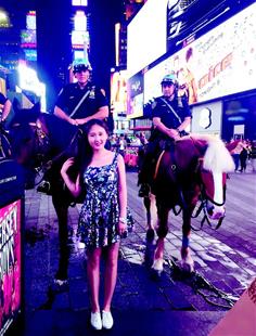 图为蓝曼在时代广场留影