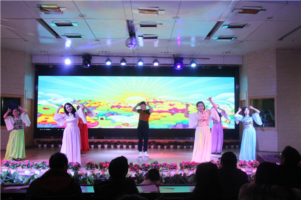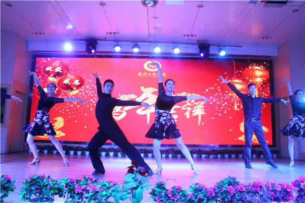 新闻中心讯(记者罗袁璐)金鸡辞旧岁,歌舞迎春来,2016年12月29日下午14:30,武汉工商学院2017年迎新春元旦文艺汇演在该校学术报告厅精彩开幕,该董事长彭秀春,校长张金隆,党委书记陈伟,副校长卢炎生、桂裕清,党委副书记孙松发,特聘教授夏再兴,校长助理左宗文、张俊、王程军等校领导,及全校400余名教职工观看了汇演。