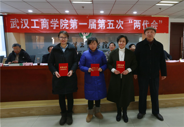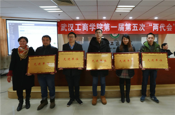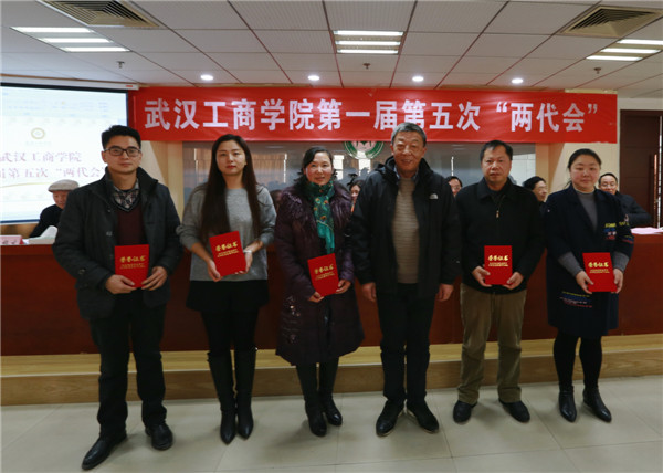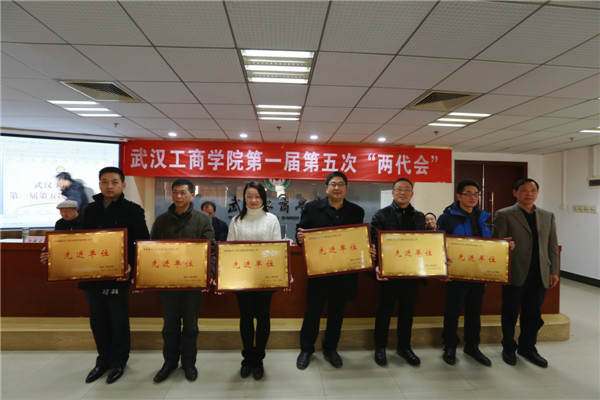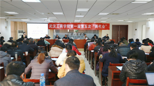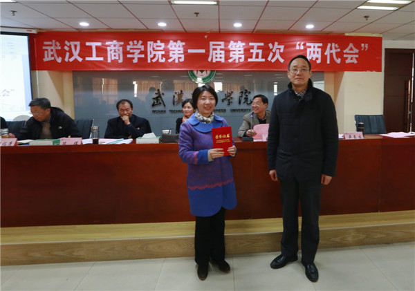 新闻中心讯(记者 万风 吴田芳)1月16日上午9:00,武汉工商学院第一届教职工代表大会暨工会会员代表大会第五次会议暨2016年度评建工作表彰大会在该校综合楼第三会议室隆重召开。该校董事长彭秀春,校长张金隆,党委书记陈伟,副校长卢炎生、桂裕清,党委副书记孙松发,学校顾问陶梅生,校长助理左宗文、张俊、王程军出席大会,全体“两代会”代表和评建工作各奖项获奖单位、个人代表参会。大会由张金隆校长主持。