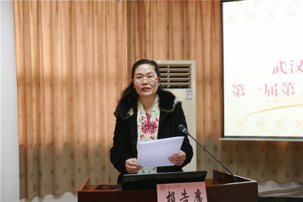 图为校工会常务副主席苏红做工作报告 摄影:小璐