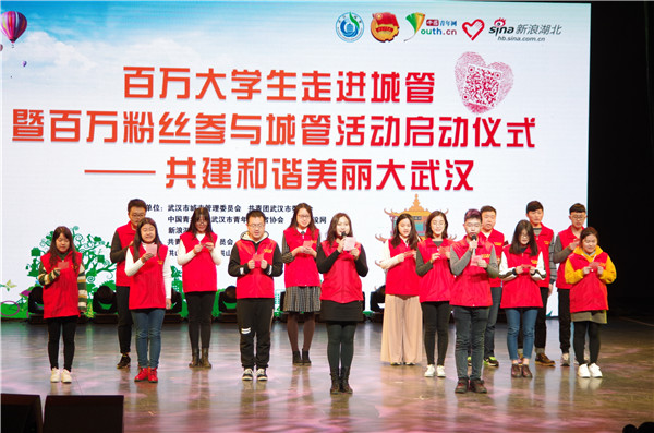 新闻中心讯(记者洪苗苗)2.26日上午9:30,“百万大学生走进城管”暨“百万粉丝参与城管”活动启动仪式在洪山区隆重举行。活动现场,来自全市30多所高校的500多名大学生志愿者参加了仪式。武汉工商学院青年志愿者协会的20名志愿者在该校团委副书记邱玉添的带领下参与了本次活动,他们将走上街头,体验城管工作的酸甜苦辣。