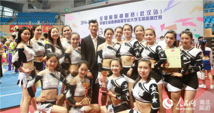 在这次比赛上,申婧雯带领着11位啦啦操队的姑娘们和其他5支来自广西、湖南、贵州、武汉的高校体育类专业的啦啦操队员们同台竞技,拿下了第三名的好成绩。