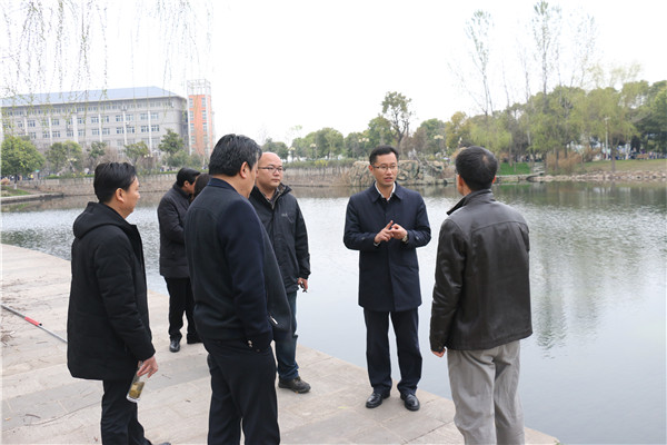 高鹏凌常委一行首先参观了该校校史馆,了解该校的办学历程、办学规模、办学成果和未来愿景,并来到学校水处理示范基地——静思湖,查看生态治理后水质情况。去年暑期,武汉发生洪灾,静思湖水受到洪水污染,该校环境与生物工程学院的骨干教师和湖北君集水处理公司的核心技术骨干,共同制定修复方案,研发新型净化设备对静思湖进行水质净化,同时通过种植矮化性苦草为主的综合生态修复措施来改善水质,湖水变得清澈透明。