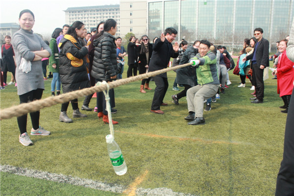 新闻中心讯(记者 陈小盼)“一二三,加油,加油!”3月16日下午两点,武汉工商学院足球场内热闹非凡,由该校工会主办,校公共基础课体育教研室承办的教职工拔河比赛在此精彩“开战”。