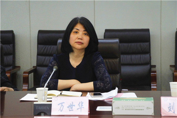 万世华专职副主委也提出了自己的建议,她认为,武汉工商学院支部虽小,却承接了大课题。她表示,武汉工商学院支部成立虽晚,但也创造了“四个第一”:一是武汉工商学院支部是民进换届后成立的第一个支部,二是武汉工商学院支部是民办高校的第一个支部,三是在政党协商课题上,第一次由直属支部来承接课题,四是武汉工商学院支部是第一个邀请专家、学者来校指导工作的。她表示,后期计划在民办高校成立几个支部并成立联盟,统一各支部资源。