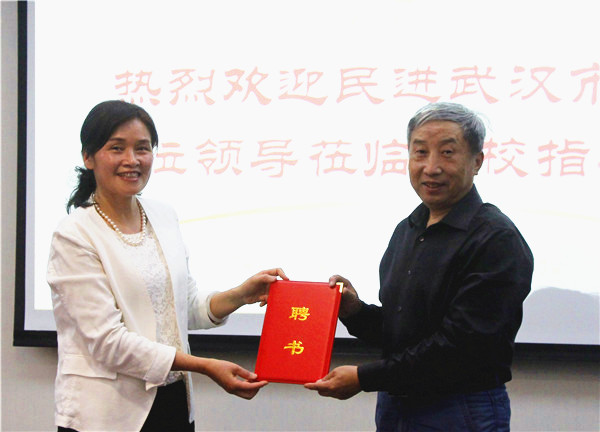 随后,彭秀春向民进武汉市委原副主委李长安颁发了聘书,聘请他为民进武汉工商学院支部顾问。