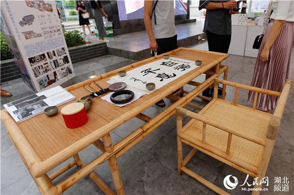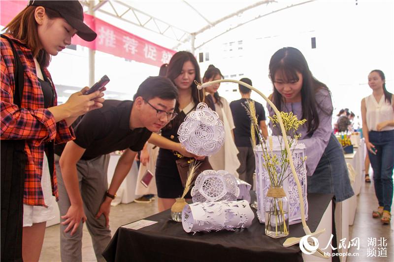 人民网武汉6月2日电(通讯员 蓝静洪苗苗)“这个竹家居的设计不错,竹椅和竹桌既有中式家居的传统味道,又融入了‘竹报平安’的美好寓意”,6月1日,在武汉工商学院艺术与设计学院2017届毕业设计作品展上,武汉智尚装饰工程有限公司董事长李奕现场相中了该校毕业生屈淼和雷敢的毕业设计作品,直接洽谈合作意向。在设计展上,还有不少企业都在现场寻找合适的作品,整个作品场俨然成了商品秀。