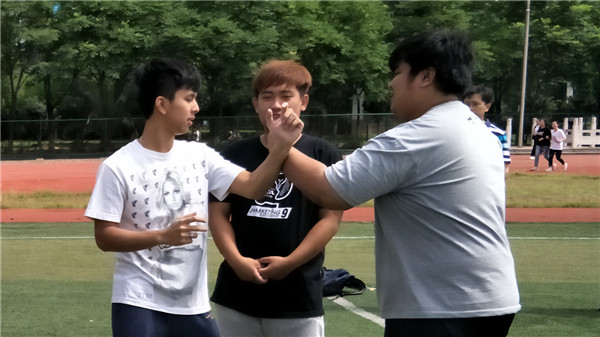 泰国学生尝试用咏春拳击打对方 摄影:张梦慈