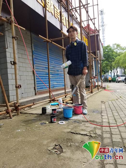 一次偶然机会,他跟着一名美术老师学墙绘。