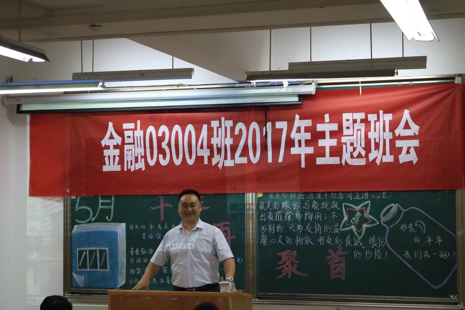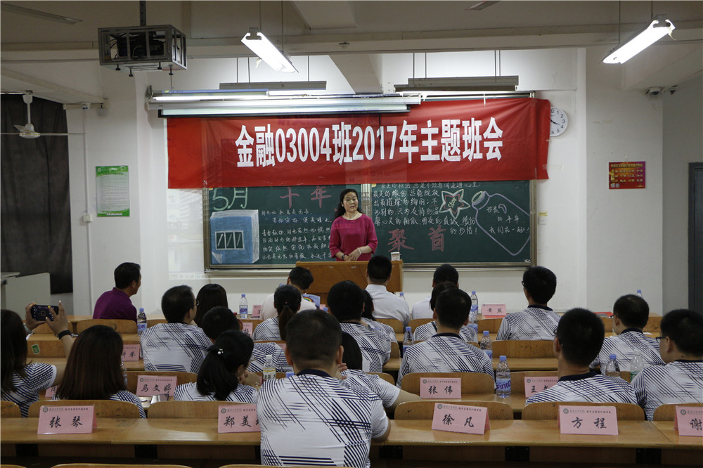参观完校园,校友们回到综合楼206教室开展了一次特殊的主题班会,此次主题班会由黄燕老师主持,班会由点名开始还原当年的情景。武汉工商学院党委副书记孙松发,工会常务副主席苏红,经济与商务外语学院党总支书记胡航,校友会办公室主任沈杰,老教工代表赵家红和校友们参加了这场阔别十年的班会。孙松发副书记为毕业生们讲述了武汉工商学院十五年来的历史沿革和发生的巨大变化,他欢迎毕业生们经常回家看看,叙叙旧,拉拉家常,学校也会想方设法为毕业生提供尽可能的帮助。