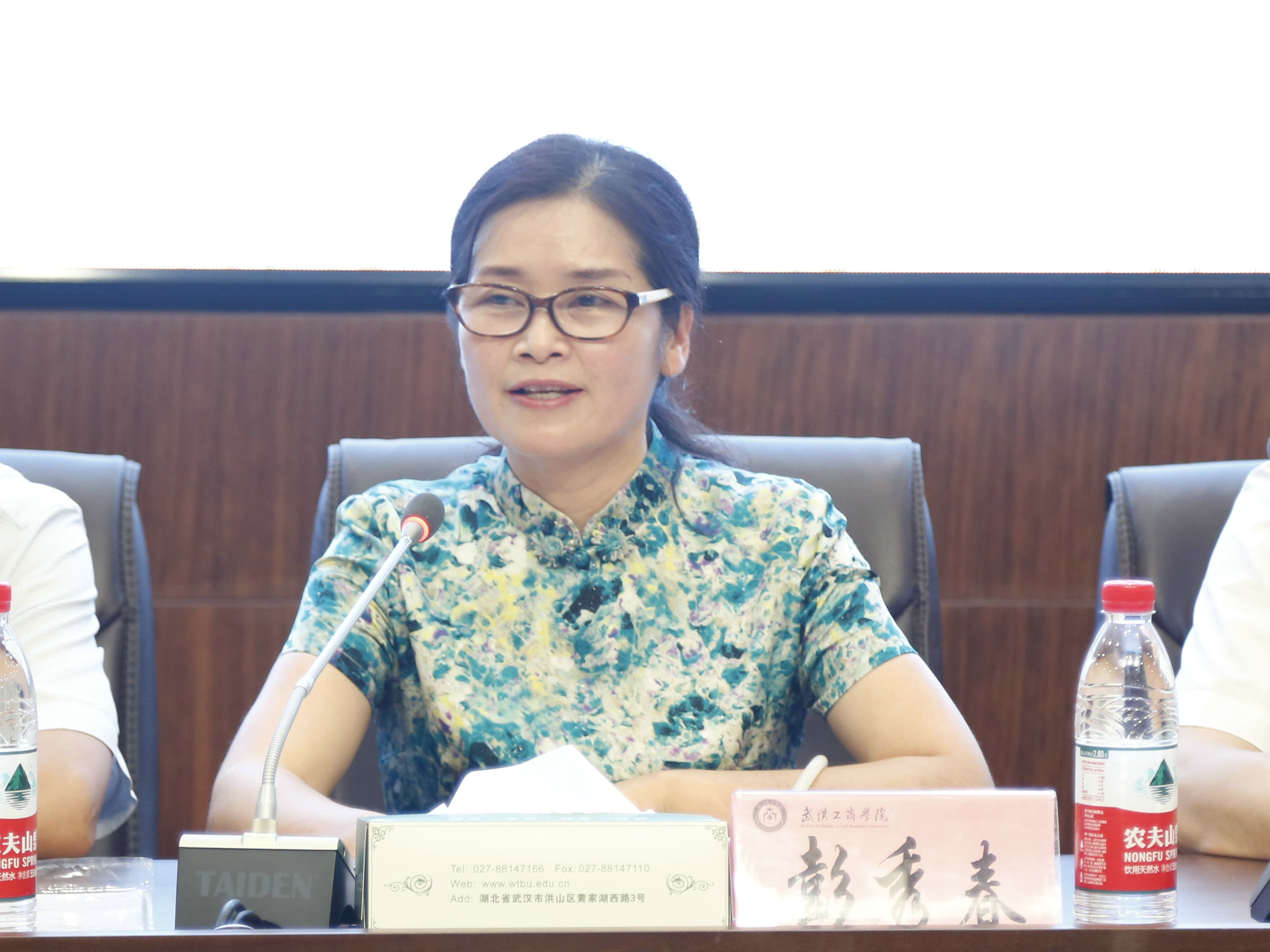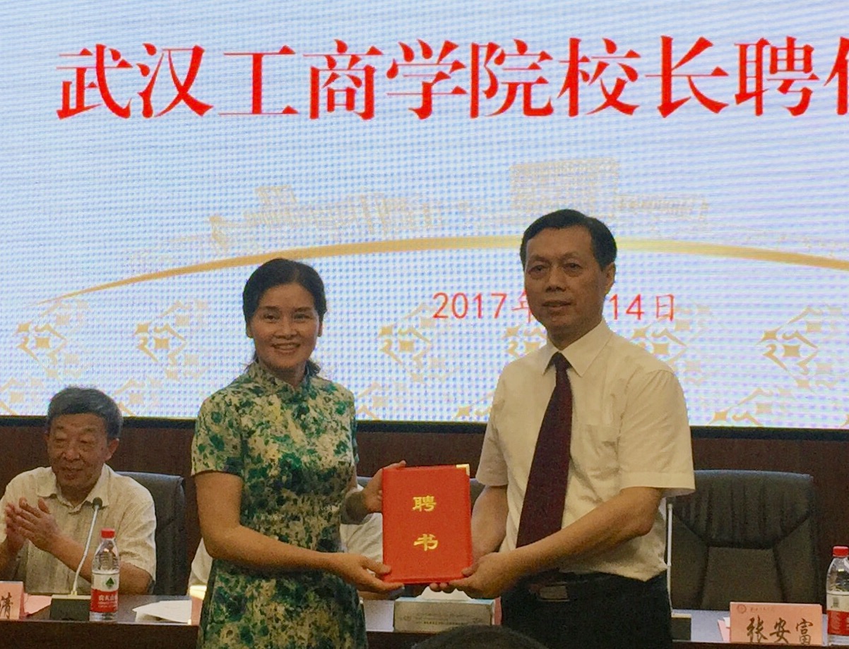 彭秀春董事长为张安富教授颁发了校长聘书,并发表致辞。她指出在以孙松发校长为核心的第一任领导班子、以张金隆校长为核心的第二任领导班子的带领下,学校事业取得长足发展,综合实力和社会声誉稳步提升。特别是,学校转设以来取得的重要成就凝聚了以张金隆校长为核心的第二任领导班子的智慧和心血。她强调,张金隆校长办学治校经验丰富,全局观念和前瞻能力强,善于抓大事、把方向、谋全局、聚人心,领导了武汉工商学院在关键历史时期的重大发展,为学校做出了大量卓有成效的贡献。她说,张金隆校长是她的老师,从他身上学到了很多,并对张金隆校长为学校发展做出的贡献表示衷心的感谢与祝愿。她指出,现在武汉工商学院进入了新的发展阶段,在省教育厅和武汉理工大学的支持和关心下,学校聘请张安富教授作为新一任校长,相信在以张安富校长为核心的第三任领导班子的带领下,学校各项事业将迈上新的台阶。她说,张安富教授是7月12日正式任职的,当天他以走访合作企业、看望实习学生的特殊形式来履行自己的工作职责。她表示,学校董事会将一如既往地支持学校新一任领导班子的工作,希望张安富校长尽快进入新的角色,建设一支强有力的领导队伍,团结带领全体教职员工,齐心协力,共谋学校发展;希望学校新一任领导班子不忘初心,继续前行,共同探索、践行适合学校自身特点的民办大学发展之路。