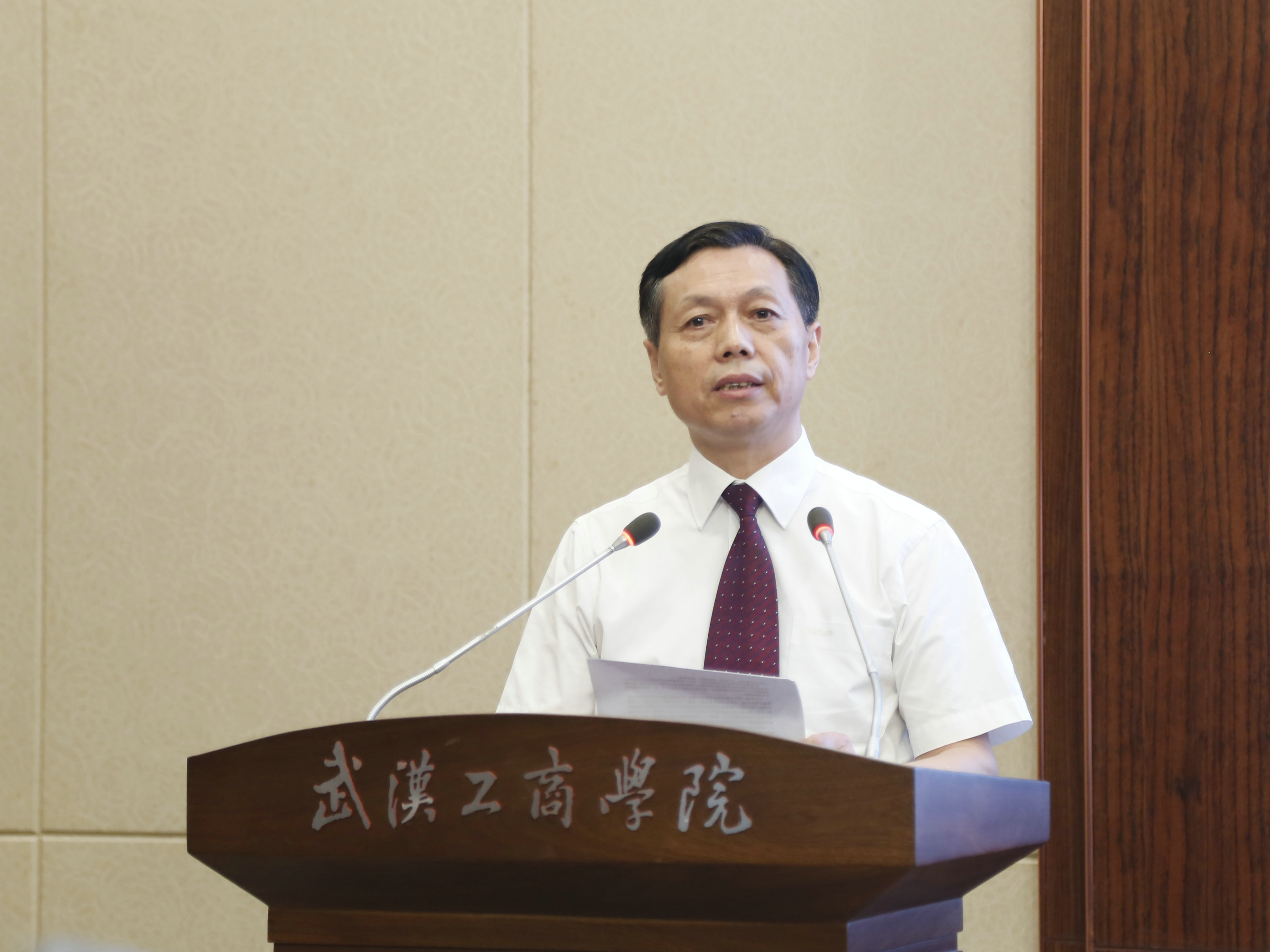 随后,张安富校长发表了就职演讲。他首先对该校董事会的信任,两任校长、陈伟书记及两任领导班子为学校发展打下的坚实基础表示感谢,对省教育厅、武汉理工大学的支持和关心表示感谢。他说:“接任武汉工商学院新一任校长,对我来说是一份沉甸甸的责任和新的使命。”作为在高等教育领域工作35年的专家,张安富校长与大家分享了六点体会。一是,关于大学认知。大学是传授知识、技能的场所,更是培养人的思想、情感、意志、品质之要地,是铸造灵魂的地方。办好大学要以学生为本、学者为先、学术为基、学风为要。二是,关于人生信条。没有最好,只有更好;学他人之长,补自己之短;超越自我,追求卓越。三是,关于理想信念。为把武汉工商学院办成一所与我国高等教育发展相适应,与国家新经济、新业态、新产业发展相适应,与建成百年名校目标相适应,具有国际视野和鲜明特色、国内同类高校中一流水平的应用型民办大学打下坚实的基础。四是,关于治校理念。以质立校、以严立学、以诚立身、以能立业。五是,关于办学目标。近期是,注重内涵发展,抓改革,提质量,上水平;任期内,扩大社会影响,创特色,出经验,树品牌。六是,关于处事哲学。倡导务实求真,忌讳浮夸虚化;倡导精益求精,忌讳粗放发展;倡导与时俱进,忌讳教条主义;倡导团结协作,忌讳独断专行;倡导表内如一,忌讳阳奉阴违;倡导和而不同,忌讳机械刻板;倡导任人唯贤,忌讳关系用人。张安富校长表示,在任期内他将做好六件事。一是,坚定信念,坚持政治坚定、方向正确,做学校政治上的明白人、行管上的召集人、教育上的搭梯人和工作上的带头人;二是,勤奋敬业,不辱使命,以饱满的热情,把主要时间和精力投入到学校的管理工作中去;三是,凝心聚力,同心同德,带领学校的管理团队发挥“1+1大于2”的作用;四是,完善制度,依法治校,不仅要完善学校的治理制度,更要提高学校各项制度的执行力;五是,从大处着眼、小处着手,精耕细作,追求细节,做好小事,推进学校精致化管理;六是,成就教师,发展学生,一方面为教师搭建舞台,提供环境,创造条件,重在激励,另一方面以学生为中心,造就适合学生的教育,培养具有高尚人格和“三力”特征的学生。他坚信,在董事会的正确领导和支持下,学校领导班子的精诚合作,以及全体教职工的共同努力下,武汉工商学院的明天一定会更加美好。