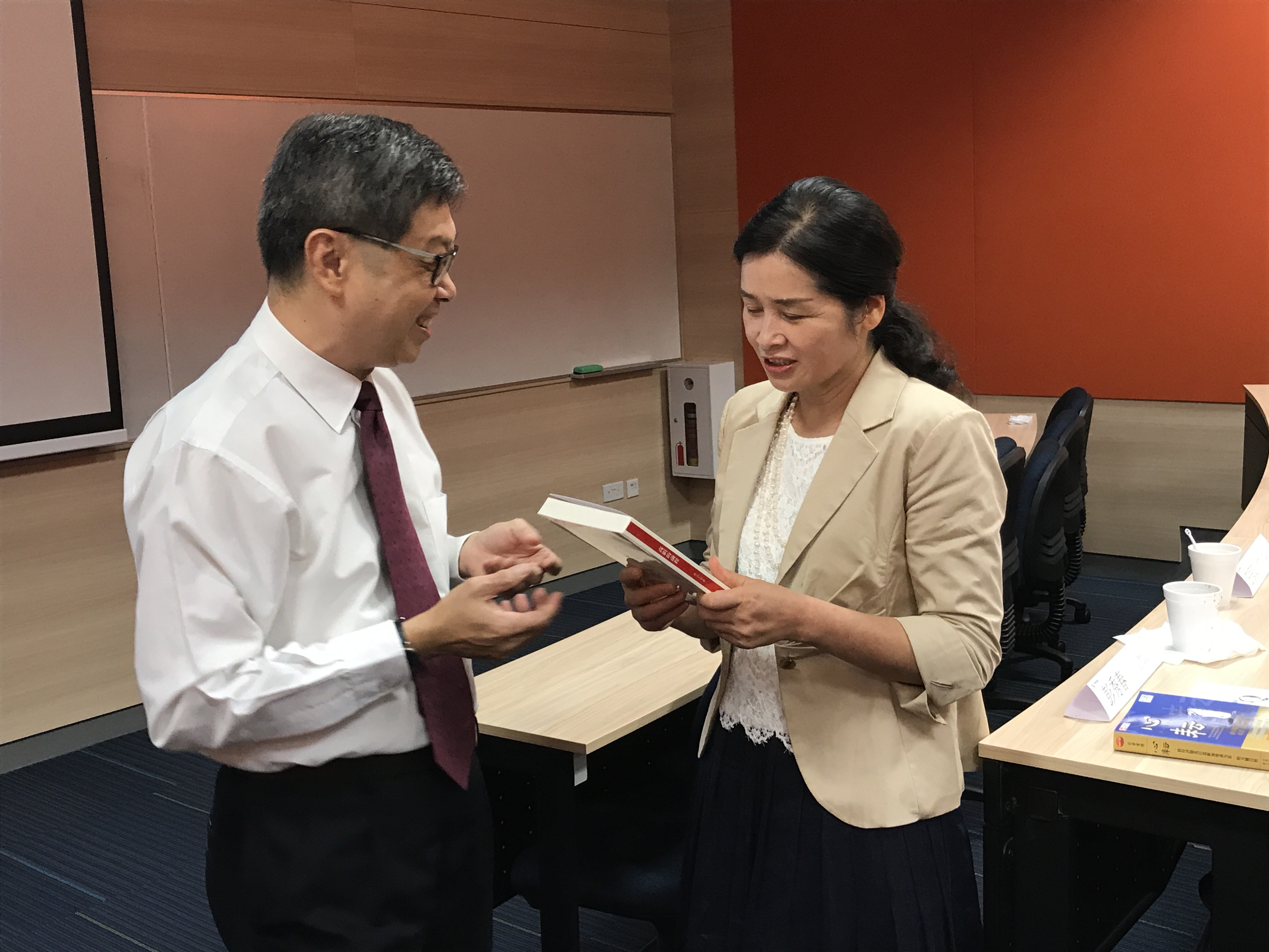 南洋理工国际副主任林俊元向彭秀春董事长赠书