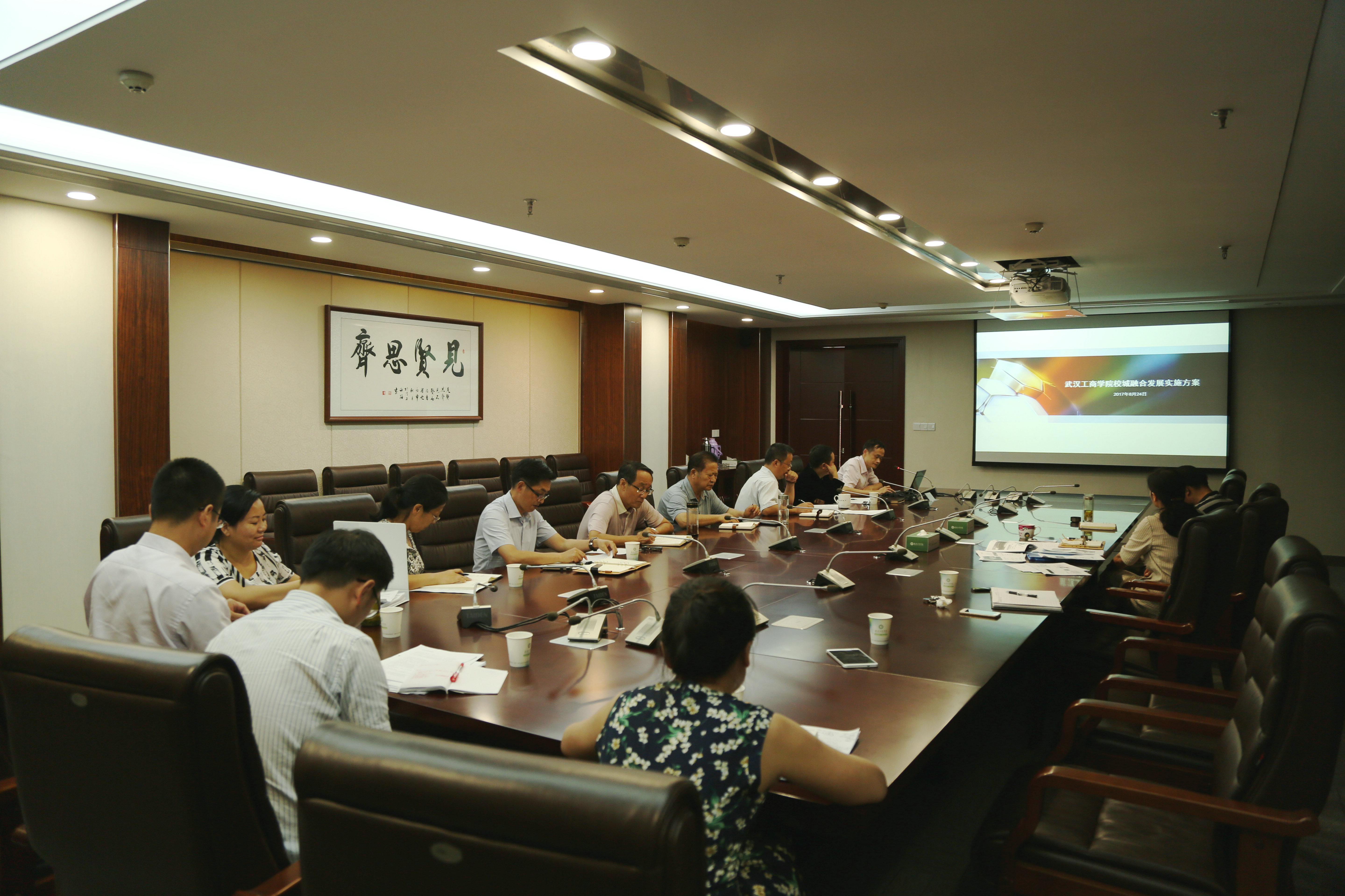 新闻中心讯(记者/摄影 小璐)8月24日上午9:00,武汉工商学院“战略发展理念提升南洋研修班”学习心得交流会在该校第二会议室召开,该校董事长彭秀春、党委书记陈伟、副校长夏再兴、党委副书记孙松发,以及参加“战略发展理念提升南洋研修班”培训的全体学员参加了会议。会议由彭秀春董事长主持。