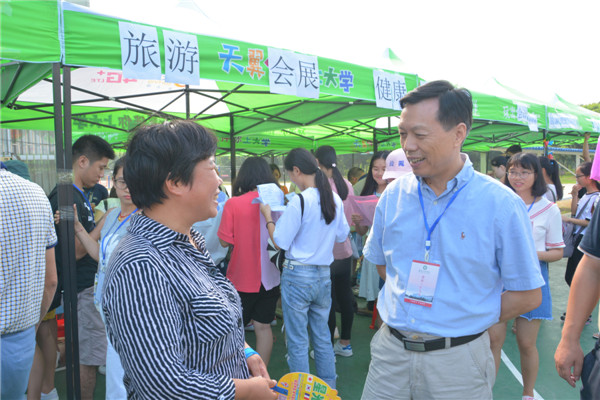校长在迎新现场与与家长交流 哈庆玲摄