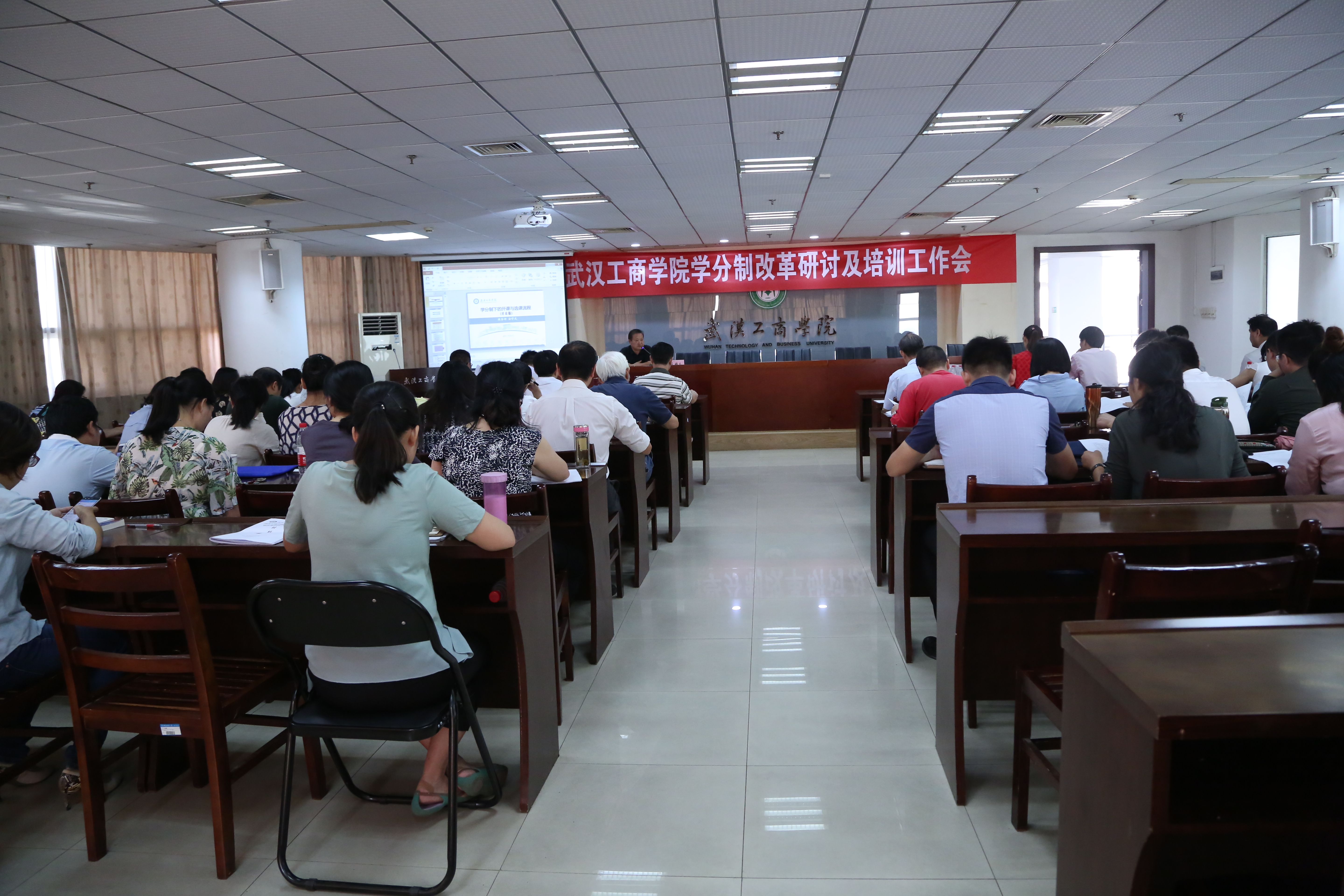 新闻中心讯(特约记者杨可)9月7日上午9:00,武汉工商学院学分制改革研讨及培训工作会议在该校第三会议室召开。该校校长张安富,副校长夏再兴,教务部部长吴敏、教学顾问余泽高、实验教学中心主任颜爱国、学工部部长陈义文、评建中心主任万玲莉、督导室主任郭一平,以及各学院教学副院长、系主任、教学秘书、课程专业负责人和教务部全体老师参加了本次会议。