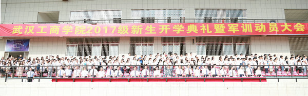 新闻中心讯(记者孙欢欢)9月12日,武汉工商学院2017级新生开学典礼暨军训动员大会在学校田径场举行。空军某部相关领导,该校董事长彭秀春、校长张安富、副校长桂裕清、副校长夏再兴、党委副书记孙松发,校长助理、应用技术学院院长张俊,校长助理、财务部部长王程军,各二级学院院长、学校相关职能部门负责人,以及部分教师代表、新生辅导员和4000余名2017级新生参加了大会。大会由该校校长助理、学校办公室主任左宗文主持。