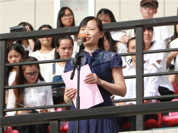该校教师代表周静首先发言。“看到这么多青春的面庞,真好!”她代表全体教师欢迎2017级新生来到黄家湖畔的武汉工商学院。她鼓励道,希望同学们去读万卷书,行万里路。“人的生命就像童话中的魔豆,只要愿意努力,就可以长高再长高,与巨人的世界并肩。只要同学们去读书,去实践,去尝试,去成功,去失败。有失败才知道自己的潜能,才有机会学习经验,才有一次次蜕变和成长,才能成就一个更好的自己,去看看巨人的世界。”周静关切的说,“很荣幸能够作为一名教师,陪伴在你们身边,给你们帮助,为你们打气,见证你们的蜕变。”