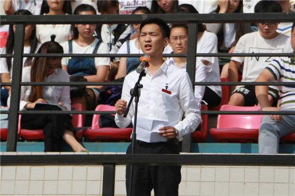 2014级文化产业管理专业陈谦作为学长学姐代表发言。他曾在今年5月登上天津卫视《非你莫属》的舞台,赢得了七家企业的高薪实习机会,在短时间内让众多知名企业家认可了他的能力。“此刻站在这儿,时光不等人,是我最深的感慨。大一的兴奋,大二的轻狂,大三的思索,大四的选择,往往转瞬间大学生活就已永不回头地飞逝而过。”陈谦分享了自己从初入大学时的迷茫,到后来不怕困难、坚毅勇敢,积极参与各项校内外比赛竞赛、社团实践和自主创业的大学经历,并以此激励学弟学妹在大学生涯中要不怕困难、敢于尝试和挑战未知的自己。