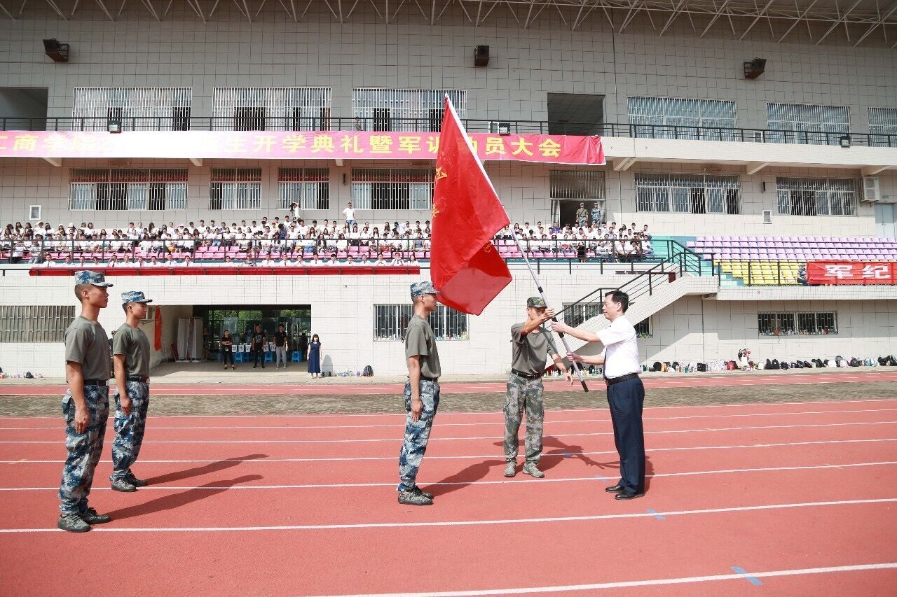 最后,张安富校长为新生军训团授旗。随着军旗舞动,迎风飘扬,2017级新生开启了为期15天的军训和4年的大学梦想之旅。