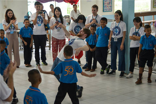 在DECENT WORK & ECONOMIC GROWTH活动中,该校代表和青年援助中心Maharat 基金会援助的孩子们互动,并参观了儿童之家和泰国最大的制造厂之一的OISHI绿茶厂。