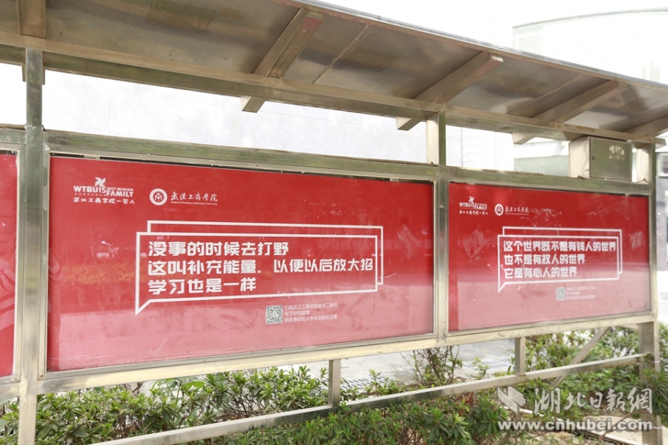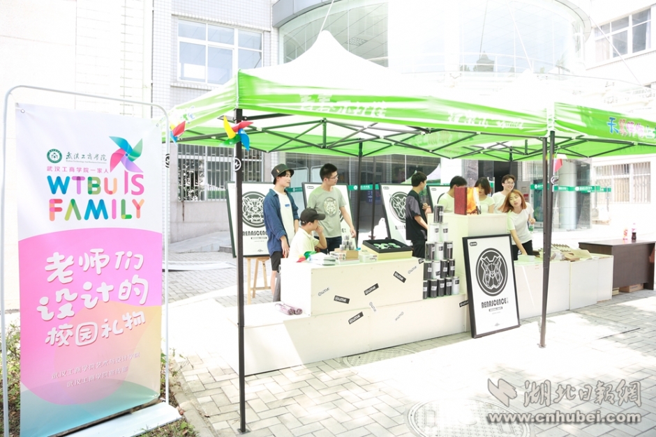 该校艺术与设计学院在迎新现场展出了该院教师、学生创作的《字绘武汉》《字绘工商》等文创产品。