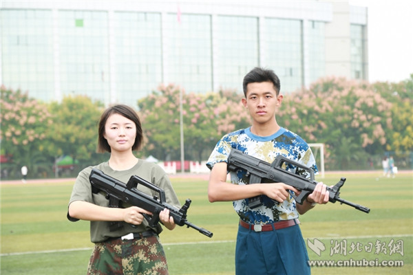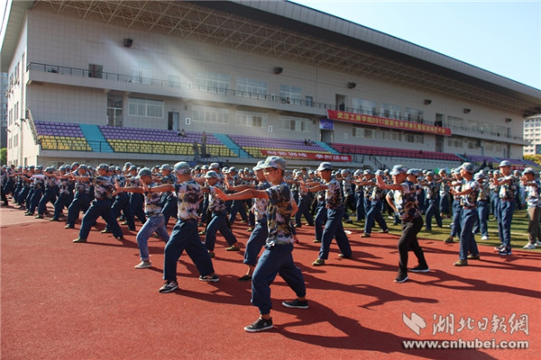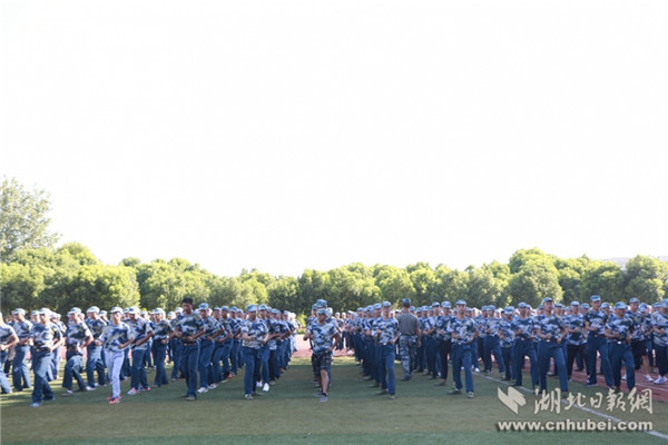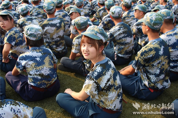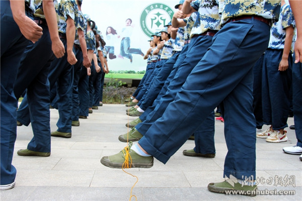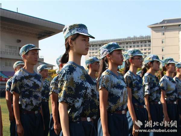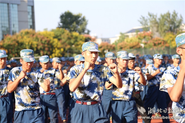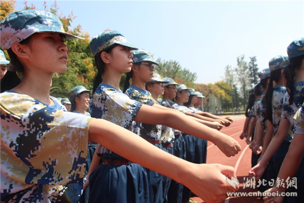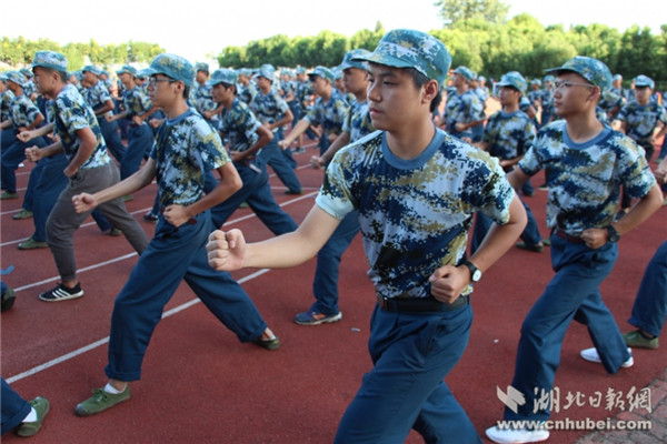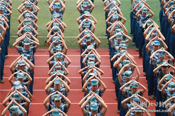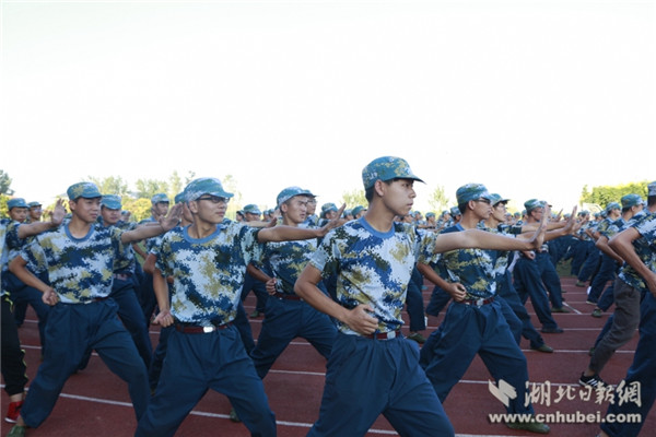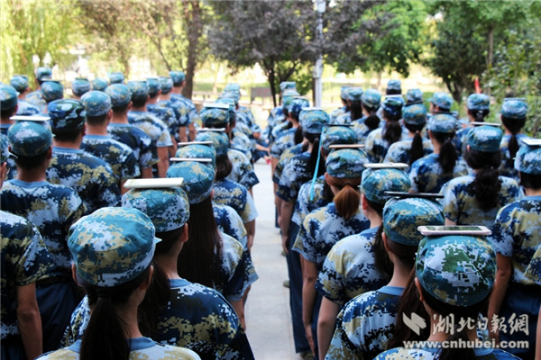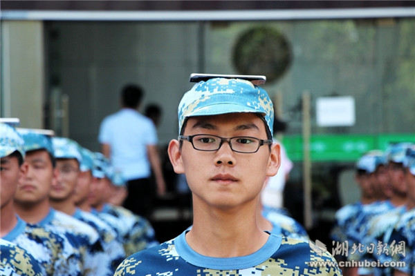 “抬头、挺胸,小腿绷直,脚尖下压,队列要与面前的细线平行!要像爱护手机一样爱护自己这么多天来训练起来的军姿。”日前,在武汉工商学院2017级新生军训现场,该校17级物流学院物流工程专业方阵的新生头顶手机,每个队列排头和末尾的学生脚缠细线,绷直成一条悬空的直线,所有学生在教官的口令下统一做着动作。这种“别出心裁”的训练方式吸引了该校众师生的关注,而让人更意想不到的是这种“奇招”是学生们主动提出来的。