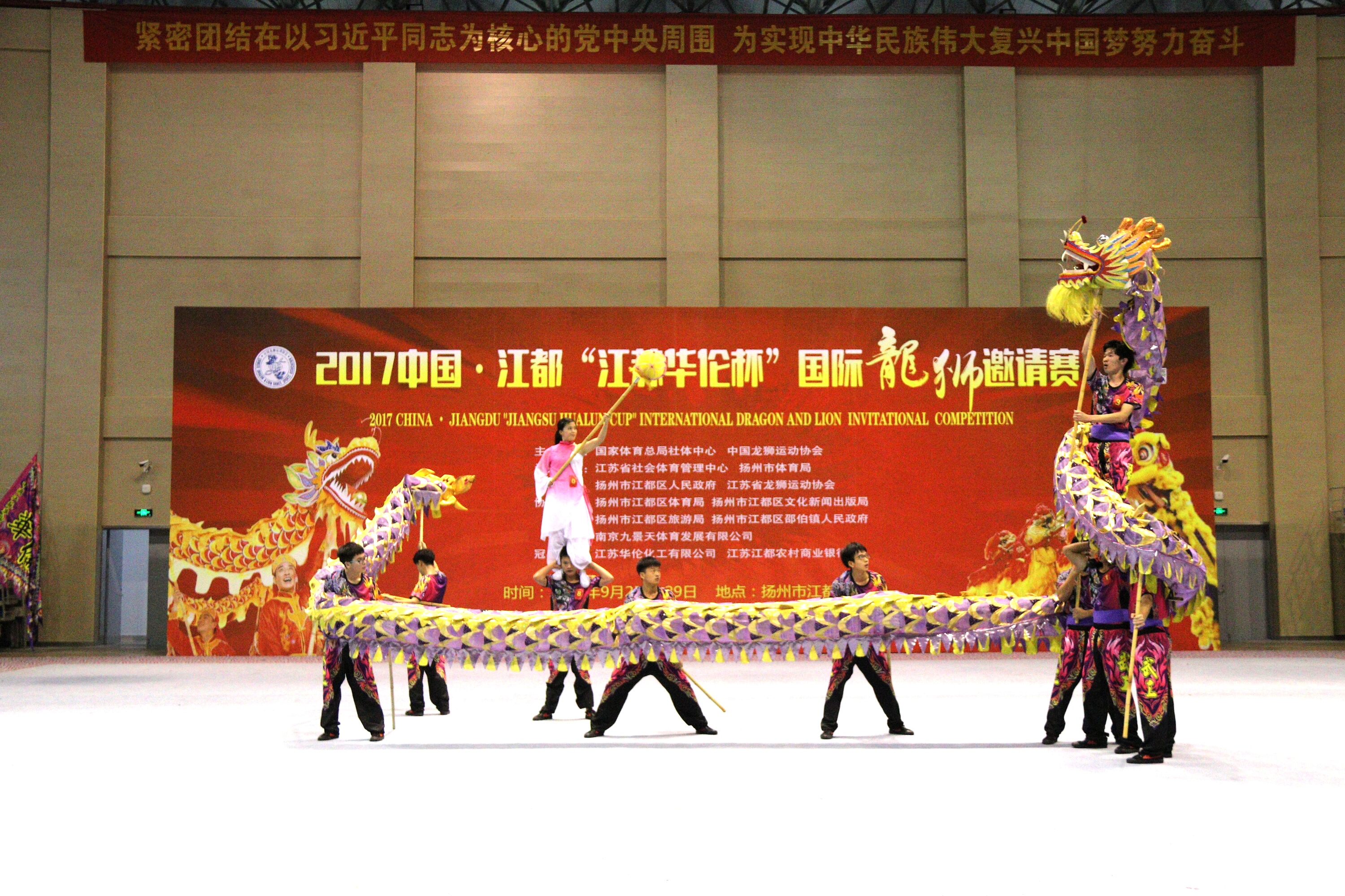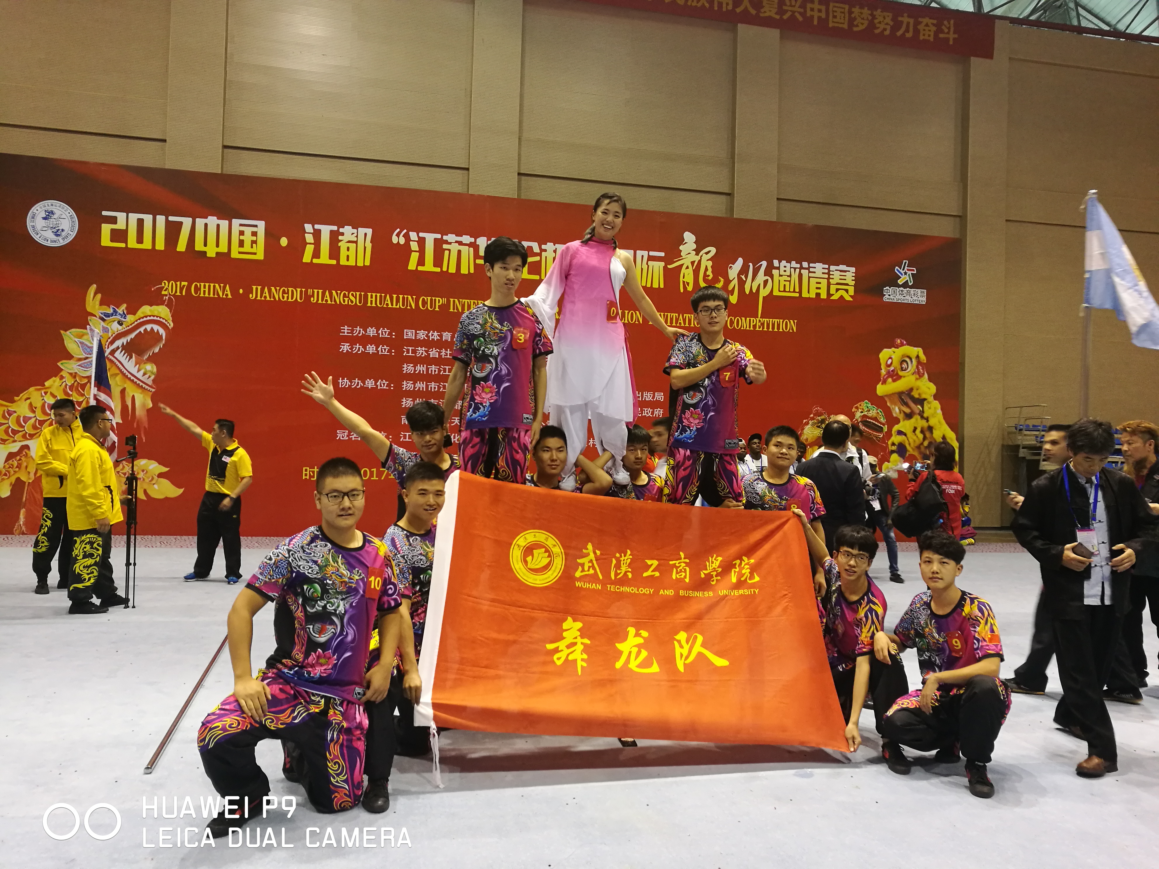 新闻中心讯(记者王依林)9月29日,由国家体育总局社会体育指导中心、中国龙狮运动协会主办的2017中国·江都国际龙狮邀请赛在江苏省扬州市落下帷幕。来自加拿大、巴西、阿根廷、印度尼西亚、马来西亚等境内外19支队伍参赛。武汉工商学院舞龙队在指导老师周龙的带领下,凭借的高水平动作完成度和完美的套路展示,在舞龙项目中斩获二等奖。