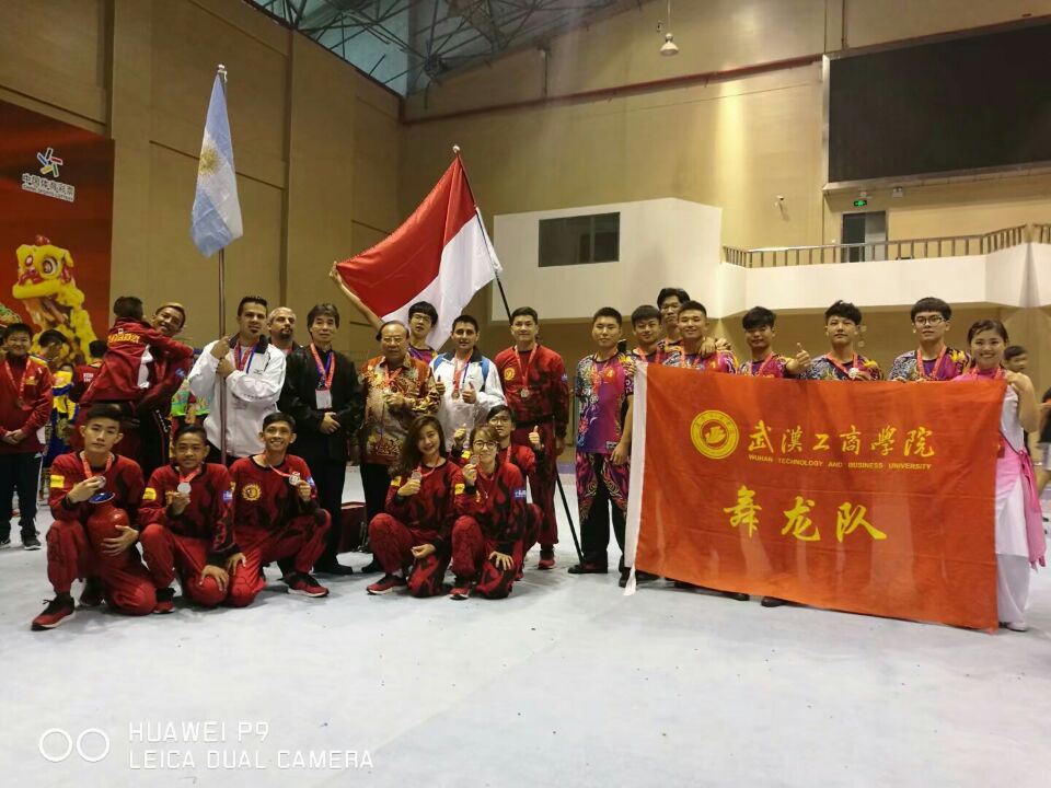 新闻中心讯(记者 王依林)9月29日,由国家体育总局社会体育指导中心、中国龙狮运动协会主办的2017中国·江都国际龙狮邀请赛在江苏省扬州市落下帷幕。来自加拿大、巴西、阿根廷、印度尼西亚、马来西亚等境内外19支队伍参赛。武汉工商学院舞龙队在指导老师周龙的带领下,凭借的高水平动作完成度和完美的套路展示,在舞龙项目中斩获二等奖。