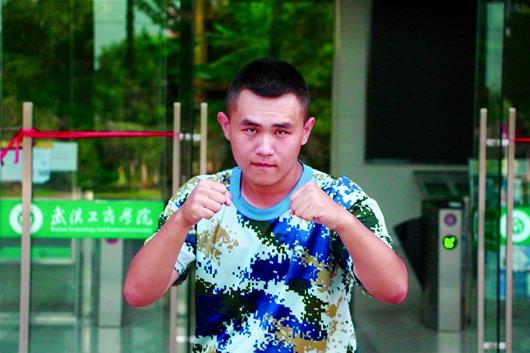 “你们听说物流学院的那个散打冠军了吗?”“是我们隔壁方阵的,军训时还看到他在表演散打呢!”近日,武汉工商学院17级物流管理专业的大一新生武明泽成了“校园红人”,他军训时精湛的散打表演给同学们留下了深刻印象,关于他“散打王”的称号和故事也在学校流传开来。