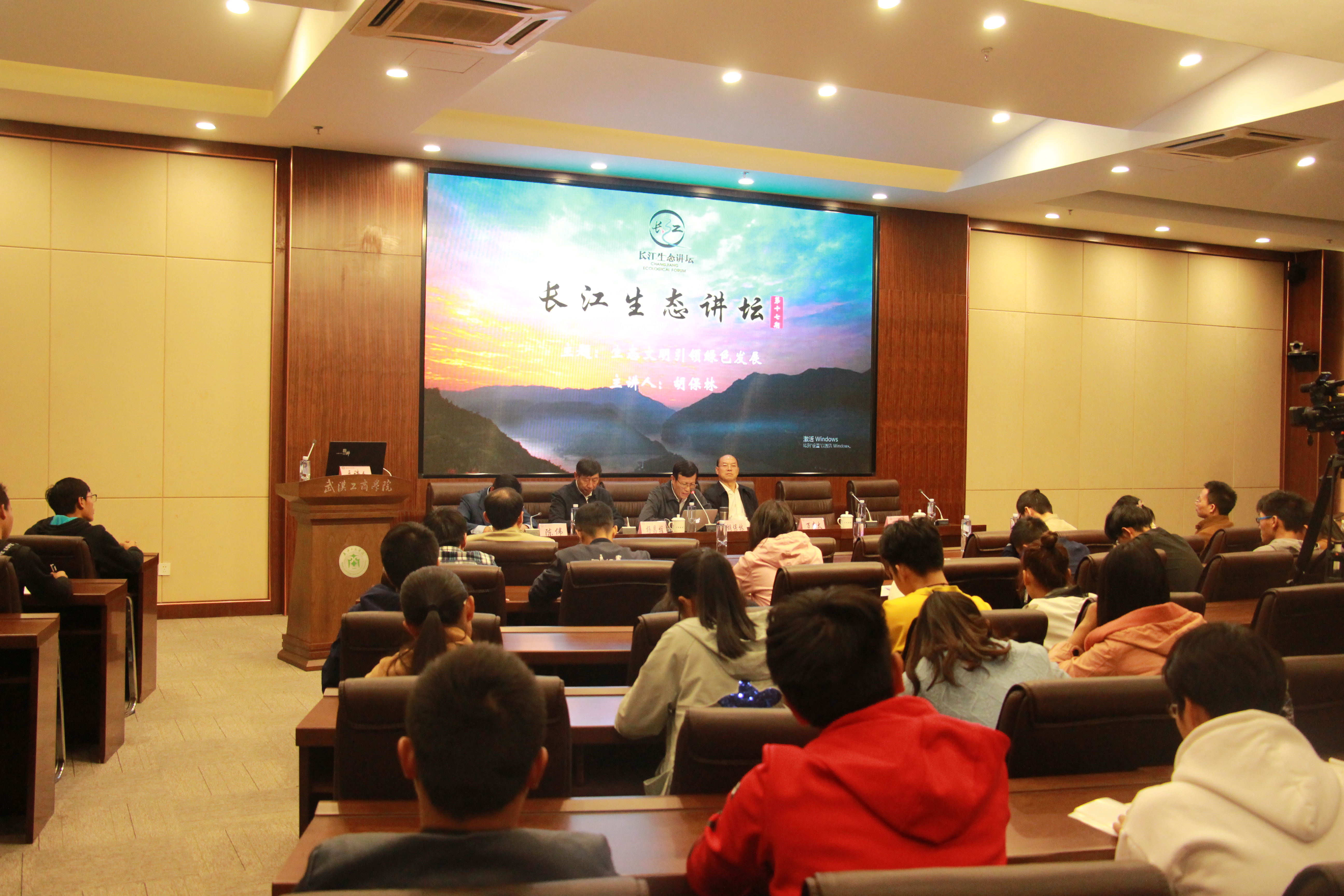 新闻中心讯(记者王依林见习记者刘乐添 谢艳 摄影 陈俊儒)10月25日上午10:00,环保部原总工程师万本太、国务院原三峡工程建设委员会副主任胡保林做客武汉工商学院长江生态讲坛,分别做《生态文明引领绿色发展》和《建设生态文明 促进绿色发展 做好环保工作》的主题讲座,中国生态文明研究会与促进会副秘书长周桂玲,湖北君集水处理有限公司董事长巴能军,武汉工商学院党委书记陈伟,该校环境与生物工程学院执行院长杨昌柱、党总支书记陈玲,以及环生学院100余名师生听取了讲座。讲座由陈伟书记主持。